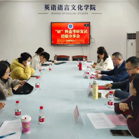 3月11日下午,公司在融院A407召开考研复试经验分享会。经理邢富坤、副经理陶伟、党总支副书记张豫晋、特聘教授黎昌抱、商务英语系教师陆海霞、英语系教师刘莹参加,毕业班辅导员徐子晗主持。会议线上线下同步进行。