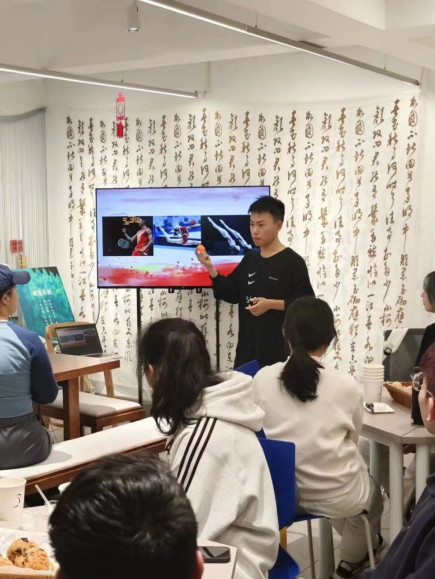 王永超首先向大家介绍了乒乓球运动的起源和发展,详细地讲述了乒乓球运动从发展走向壮大的历史。期间,王永超热情地与职工们互动,和他们交流各自国家杰出的乒乓球运动员以及平时看过的精彩的乒乓球赛事。