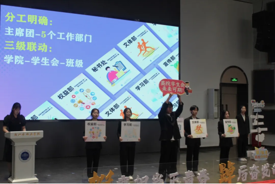 工作展示环节中,员工会主席团成员胡思桐以“UNION”引申出的五个单词——Unity、Navigation、Influence、Omnipotence和Nurturance作为关键词展开学年工作汇报。