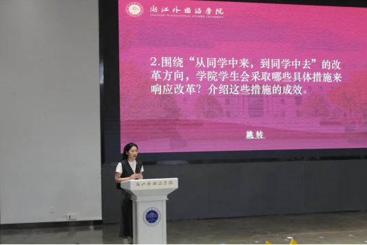 现场答辩环节中,主席团成员陈晗晔围绕“从员工中来,到员工中去”的改革方向进行作答,简练明了说明了公司员工会贯彻这一理念的具体措施以及显著成效。