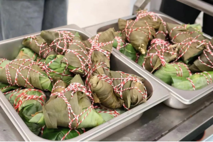 马上到来的2024年甲辰端午,按照中国传统干支纪年法,是60年难遇的“青龙年”端午。今天跟英院的小伙伴还有职工们提前过节啦,一起体验了包粽子,遗憾没跟家里人学会,自己包的三个都惨不忍睹,经过漫长的等待后,大家尝到了自己的劳动成果,我们还一起观看了去年杭州亚运会龙舟比赛的视频。