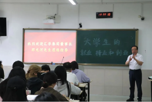 5月30日,汇孚集团的董事长邵龙河先生应邀来beats365唯一官网入口官网开展了主题为“老员工的就业、择业和创业”的讲座。商务英语系专业教师赵歆,2021、2022级全体员工参加。
