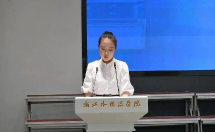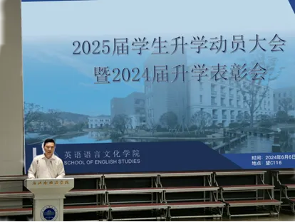 2024届升学先锋代表姚雨棋和沈家艺上台发言。姚雨棋分享了自己的备考经验,她认为考研是一个从苦涩中逐渐散发出甘甜的过程,鼓励学弟学妹们不仅要为了考试结果而努力,也要享受备考的过程。沈家艺建议大家“早做打算,找准方向,明确目标”。她表示,申请出国虽然过程繁琐,但只要有计划、有目标,按部就班地进行,就一定能够实现自己的目标。
