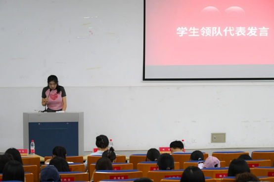 领队代表23英语7班叶嘉琪发言,她呼吁各位暑期社会实践队员们在未来的实践中,充分发挥专业所长,成为促进地区发展的积极参与者和有力助推者。