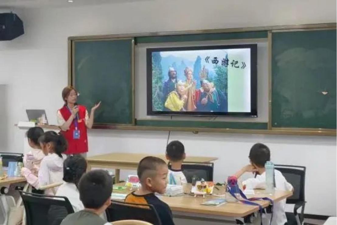 次日上午,团队成员以《西游记》经典片段——三借芭蕉扇,带领小朋友们开启了中国优秀传统文化之旅。为了能让小朋友们更有体验感与代入感,课堂中邀请若干小朋友还原三借芭蕉扇的情节,生动的演绎得到了一致喝彩。随后在节气部分,团队成员介绍了芒种的起源、含义与习俗,并用芒种时农民遮阳所佩戴的草帽开启本节课的手工环节——芒种草帽DIY。小朋友们设计制作自己喜欢的草帽图案,借此感受丰收的喜悦。