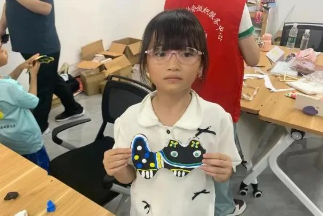 在夏令营第一站——初探“泥泥狗”(一项国家级非物质文化遗产)工艺,团队成员与小朋友们一起溯源“泥泥狗”的历史,以生动、富有童趣的方式先后介绍了“泥泥狗”的制作工艺、传承与发展。在团队成员的带领下,小朋友们探索用轻黏土制作自己喜欢的“泥泥狗”形象,从威风的中国龙到憨态可掬的小狗,每一个小朋友都在趣味手工的过程中对“泥泥狗”有了更深的了解,爱上了这一非遗手工艺品。
