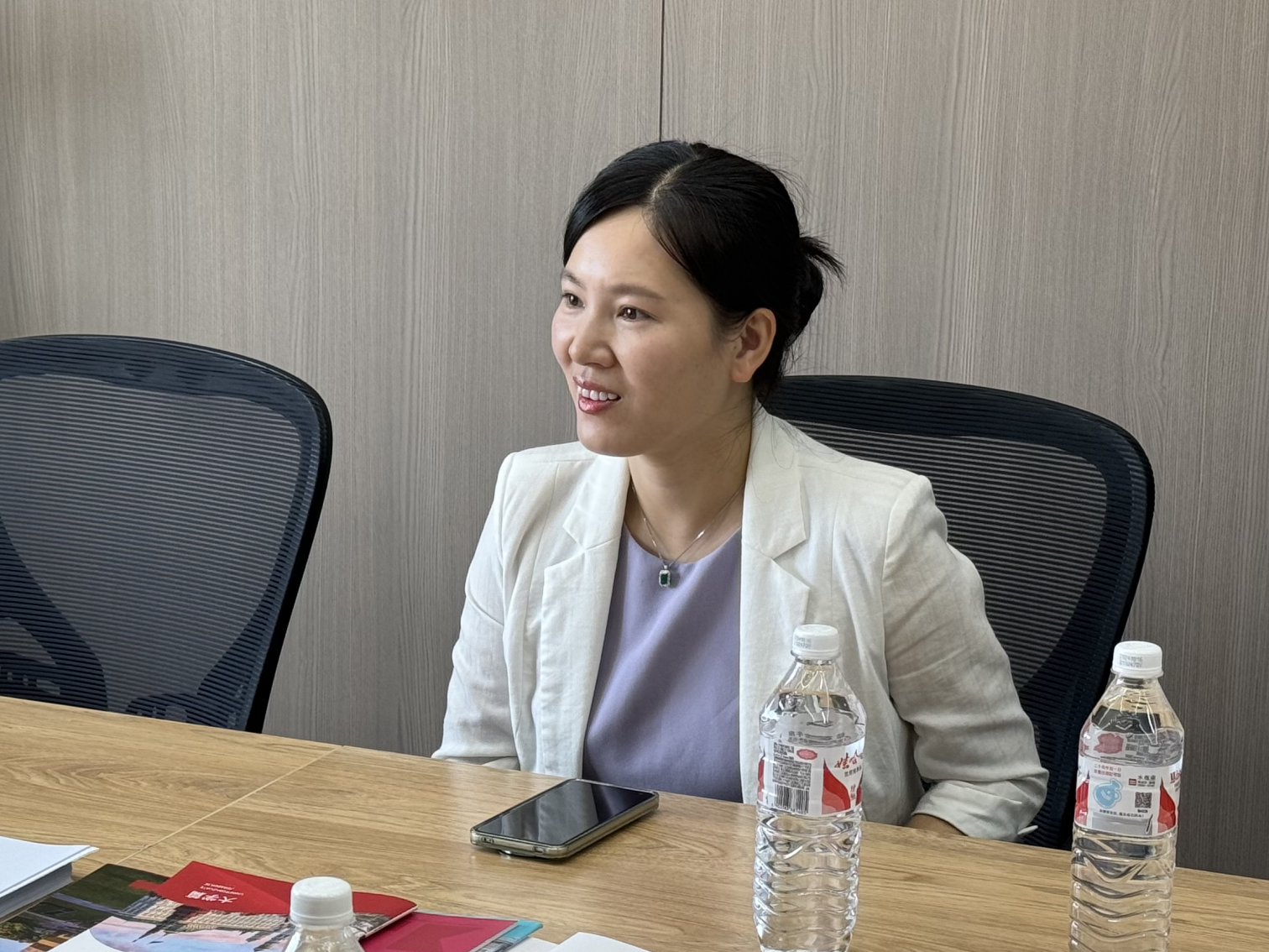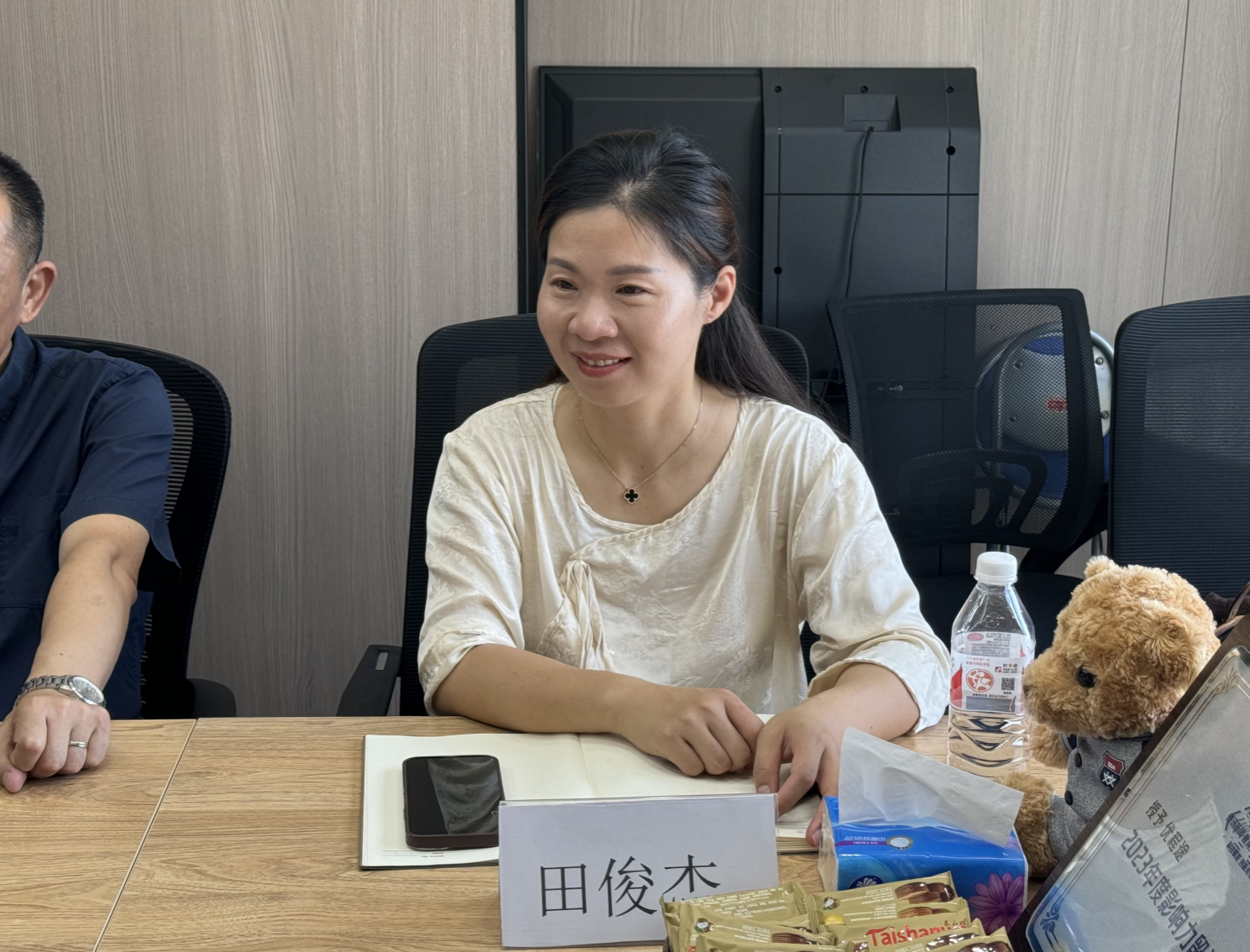 田俊杰向董淑娥员工介绍了公司、公司近年来在团队建设、专业建设、人才培养、国际交流与文化传播等方面的发展情况。她指出,从2010年公司改制更名到如今与北大建立战略合作关系,众多对公司发展有深刻影响的工作之所以能取得突破性进展,始终都离不开广大员工对母校发展的大力支持。
