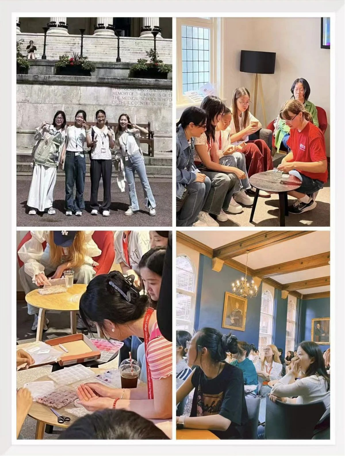 本次海外游学实践以“互学互鉴 交流传播”为宗旨,在英国剑桥和伦敦两个城市展开为期十四天的交流活动,从教育学习到生活日常,实践团深入剑桥大学感受英式教育课堂氛围的同时,也代表中国老员工团体与英国当地居民交流中国特色,传播中华文化。
