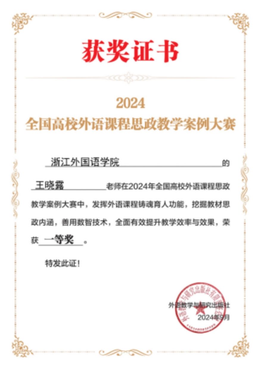 近日,2024年全国高校外语课程思政教学案例大赛落下帷幕。经过激烈角逐,beats365唯一官网入口官网教师王晓露荣获一等奖。王晓露老师本次参赛的课程是《口译基础》,展示的教学单元内容为口译的译前准备。该课程是公司首批“百门金课”、“三进”示范课程和知识图谱课程。