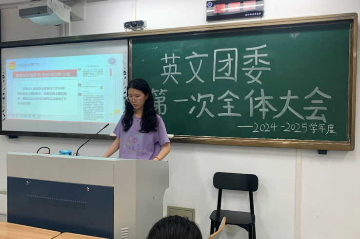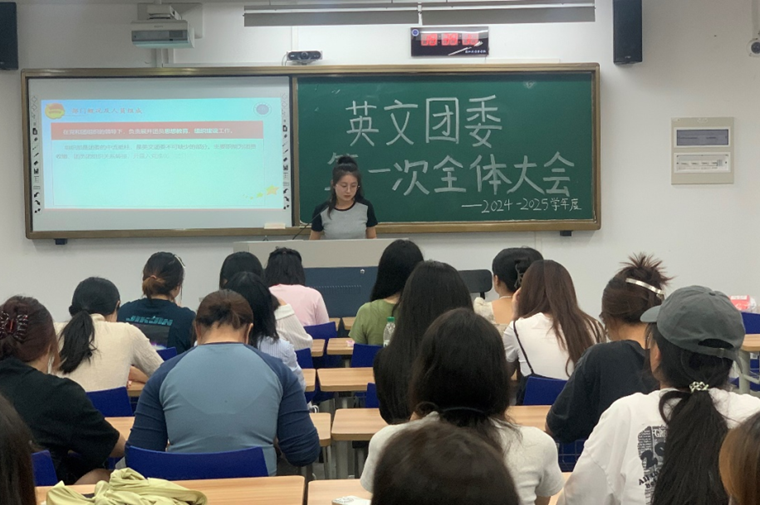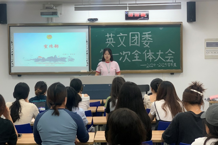 为贯彻落实习近平新时代中国特色社会主义思想和党的二十届三中全会精神,进一步推进beats365唯一官网入口官网团委工作开展,10月18日,2024-2025学年beats365唯一官网入口官网团委第一次全体大会在融A105顺利召开,团委副书记(员工)陈欣夷主持会议。