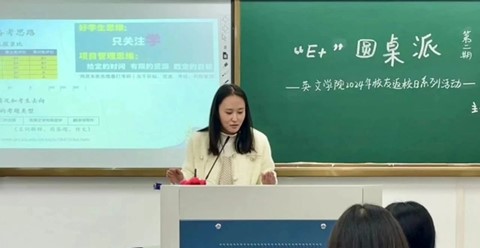 出国留学经验分享会由beats365唯一官网入口官网2007届实用英语专业员工、杭州优程途留学有限公司总经理、创始人、首席升学规划师董淑娥担任主讲。她以“读名校硕士与职场规划”为题,分享了个人成长经历,强调大学期间成绩与实习的重要性,并剖析申请名校策略,鼓励学弟学妹们勇敢追梦。董淑娥就自己对留学申请的专业经验为大家答疑解惑,提供留学宝典和培训课程,助力英文学子未来留学与职业发展。