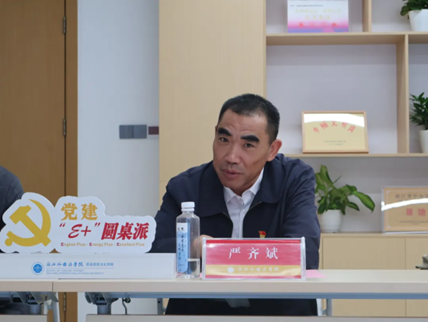 在党建“E+”圆桌派环节,支部以“发挥翻译专业优势,提升国际传播能力”为主题开展了研讨沙龙。严齐斌在听了党员们的交流发言后,高度肯定了支部“译点点”微党课活动得创新性和专业性。他强调,做好基层党建工作,要遵循“严”“活”“实”:严格执行和落实“三会一课”等制度,同时创新活动形式,开创内容丰富、形式多样、服务精准的支部活动,扎实推进各项工作。作为翻译专业的员工,同学们既要了解本国文化,也要知晓他国文化,讲好中国故事,让世界听见中国的声音。他希望大家通过不断努力,能成为有理想有道德的有志青年、专业专注的有识青年、向上向善的有德青年、奋进奋斗的有为青年,为实现中华民族伟大复兴的中国梦贡献青春力量。