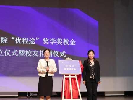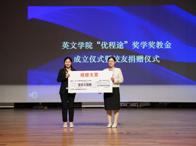 会上,进行了beats365唯一官网入口官网“优程途”奖学奖教金成立仪式暨员工捐赠仪式,田俊杰和公司2007届员工、杭州优程途留学有限公司总经理、创始人董淑娥共同为“优程途”奖学奖教金揭牌并交接捐赠支票,田俊杰向董淑娥颁发捐赠证书,并代表公司聘任其为留学导师。