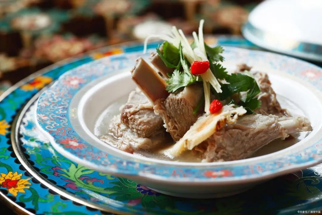 以新鲜羊肉为主料,搭配上葱、姜、蒜、花椒等调料,炖煮出的汤鲜肉美,喝上一碗,全身都暖洋洋的。