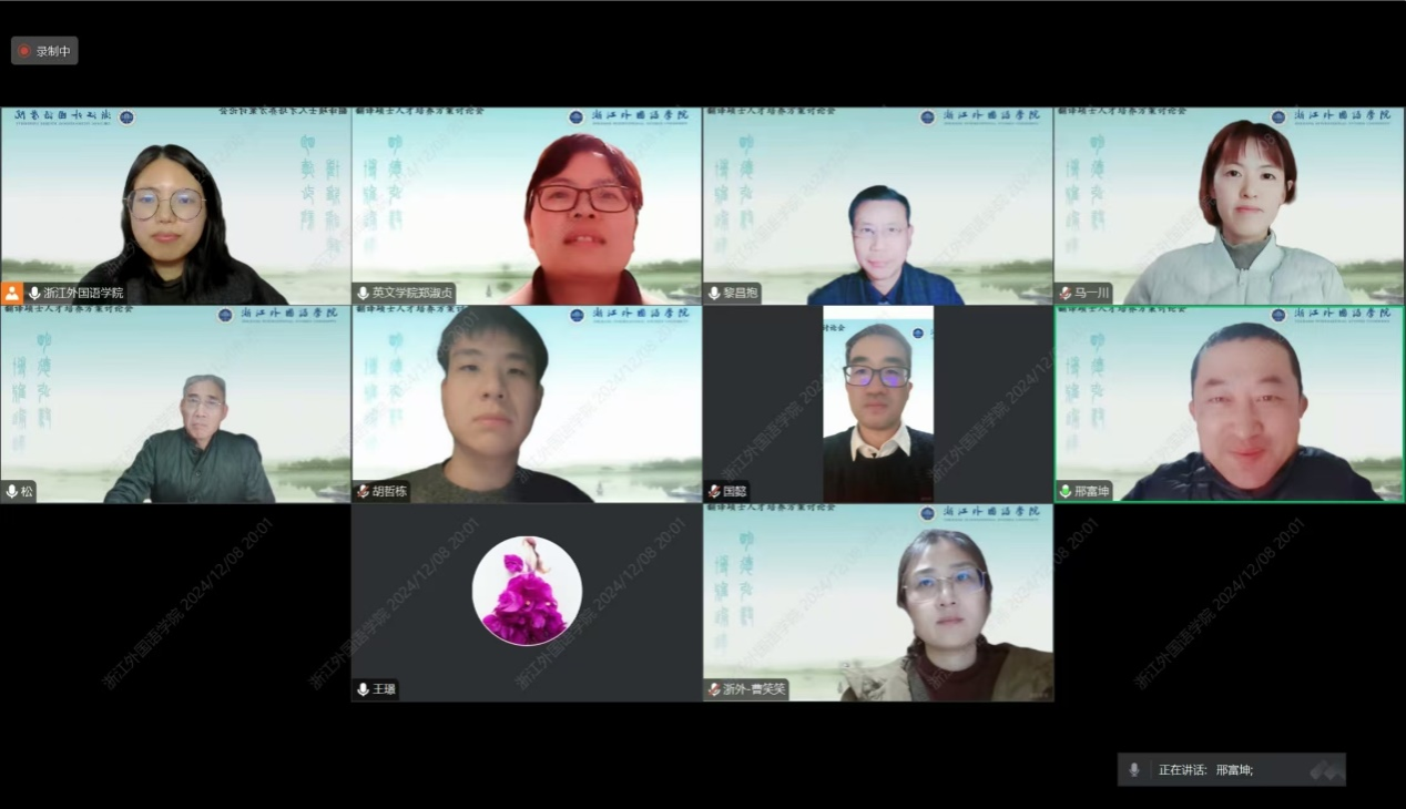 12月10日晚,翻译硕士人才培养方案的线上讨论会顺利举行。东语公司经理曹笑笑、副经理马一川,西语公司王松亭教授、学术副经理国懿教授,beats365唯一官网入口官网翻译学科负责人、特聘教授黎昌抱,副经理郑淑贞,以及翻译学科团队成员和各公司科研秘书参加。会议由beats365唯一官网入口官网经理邢富坤主持。
