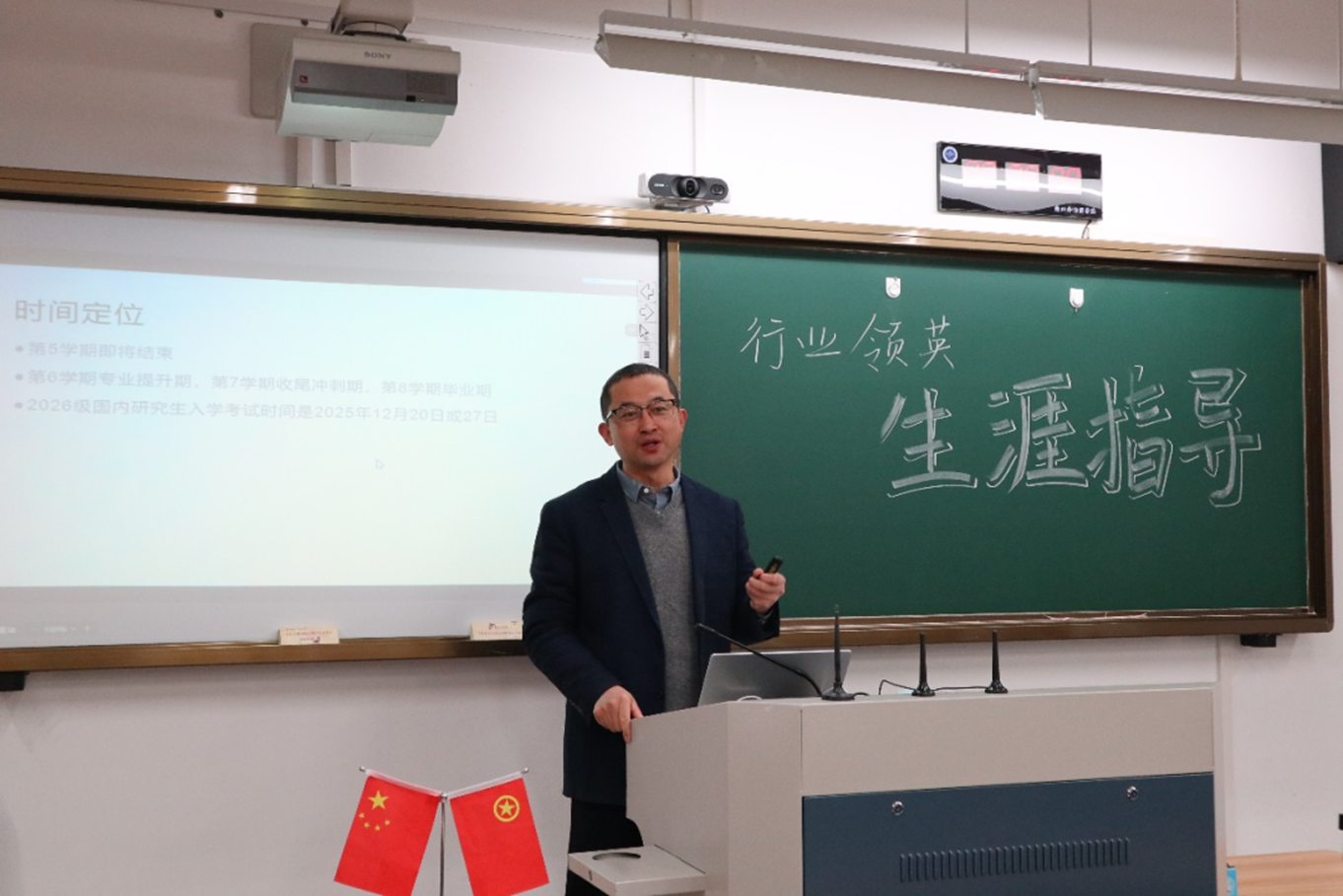 邢富坤列出了各学期时间安排表,结合留学考研的往年招生目录、录取及调剂情况、公司规模、研究方向与团队力量等具体数据,详细介绍了五个规划:专业规划、考研规划、留学规划、实习规划与就业规划。同时,他向同学们清晰地展示了各个规划路径的目标方向和准备方式,为同学们提供了切实可行的发展方案,鼓励同学们根据自己的兴趣,早日确定职业方向,并为之而努力奋斗,即使没有取得理想成果,这个坚持到底的经历也是宝贵的人生财富。
