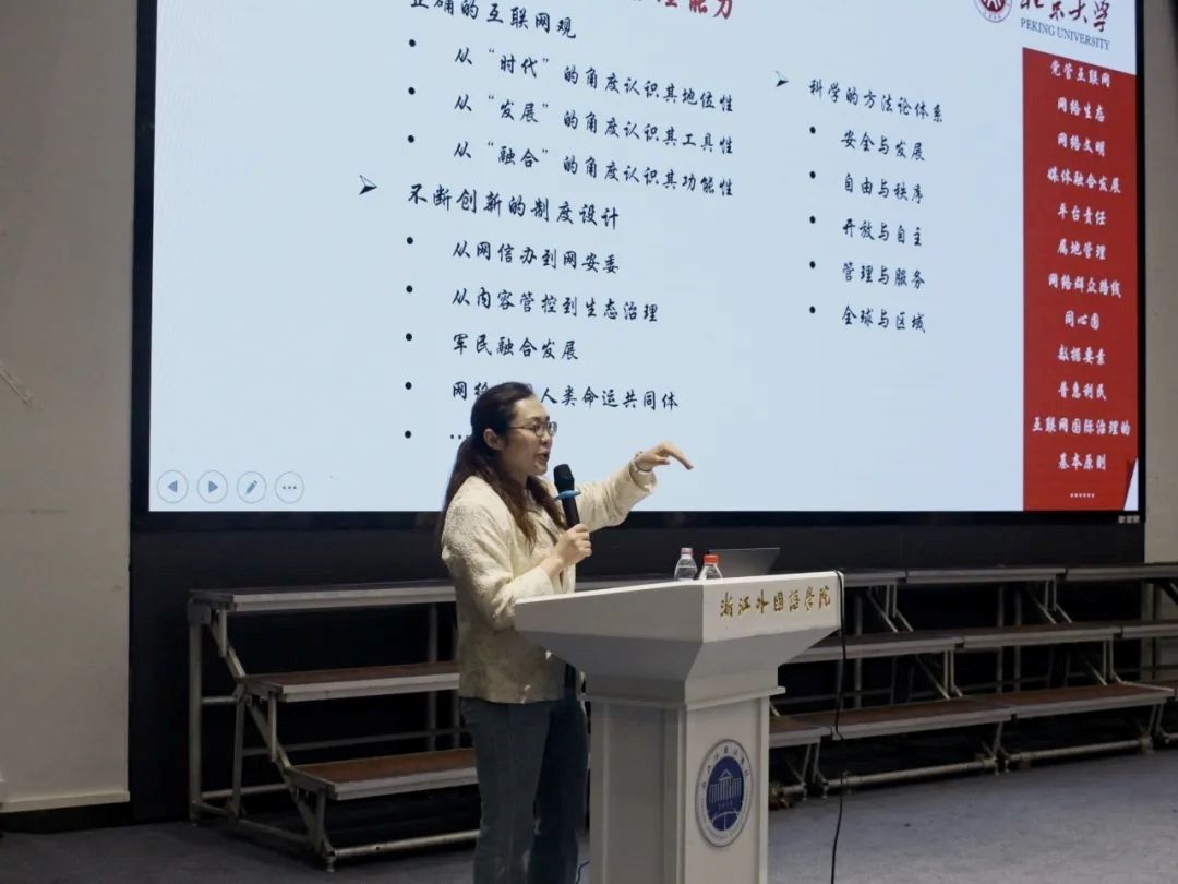 4月29日晚,浙外和北大“大师课”第七讲如期而至,北京大学新闻与传播公司党委书记、新媒体研究院副经理田丽教授以“中国互联网时代的发展逻辑及经验总结”以主题,深析技术进步与社会治理耦合同行的学术盛宴。