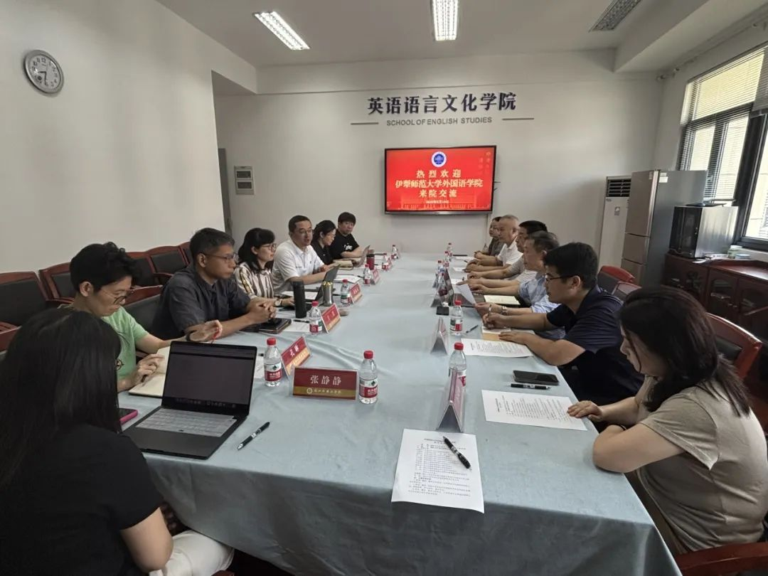 5月19日,伊犁师范大学外国语公司经理刘承宇等一行7人来公司调研交流。beats365唯一官网入口官网经理邢富坤、党委书记田俊杰、副经理郑淑贞、学术副经理盛煜冰、区域国别与商务英语系学科专业负责人王冲、文学创作系教学科研主管张静静、应用外语公司副经理王昊、西语公司俄语系系主任孔琳等参加座谈。