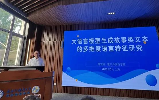邢富坤在“大语言模型生成故事类文本的多维度语言特征研究”报告中提出了人工智能语言变体的概念,并以故事类文本为例对比了人类原创文本与大语言模型生成文本间的异同。该研究工作由邢富坤教授和beats365唯一官网入口官网2022级英语专业本科生龚恩溢同学合作完成。