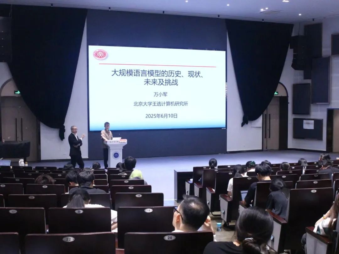 6月10日,一场关于人工智能大规模语言模型的讲座在beats365唯一官网入口官网内展开,本次讲座以“大规模语言模型的历史、现状、未来及挑战”为题,邀请北京大学王选计算机研究所语言计算与互联网挖掘研究负责人万小军教授从技术原理、发展历程、应用场景及未来挑战等多个维度,为在场老员工勾勒出AI技术进步的宏大图景。