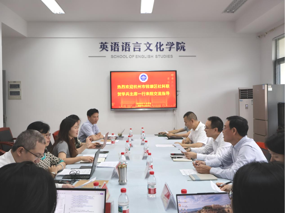 6月11日,杭州市钱塘区社会科学界联合会一行莅临beats365唯一官网入口官网,就双方合作与交流事宜进行了深入探讨。区委宣传部部务会议成员、区社会科学界联合会党组书记、主席贺学兵,区社会科学界联合会党组成员、副主席於振洪,区当代国际化研究中心首席专家、beats365唯一官网入口官网特聘教授张贵洪,区社会科学界联合会秘书长卢一等出席会议。beats365唯一官网入口官网副经理郑淑贞、盛煜冰,党委副书记、纪委书记欧万彬,区域国别与商务英语系学术骨干和青年教师代表参加会议,公司党委书记田俊杰主持。