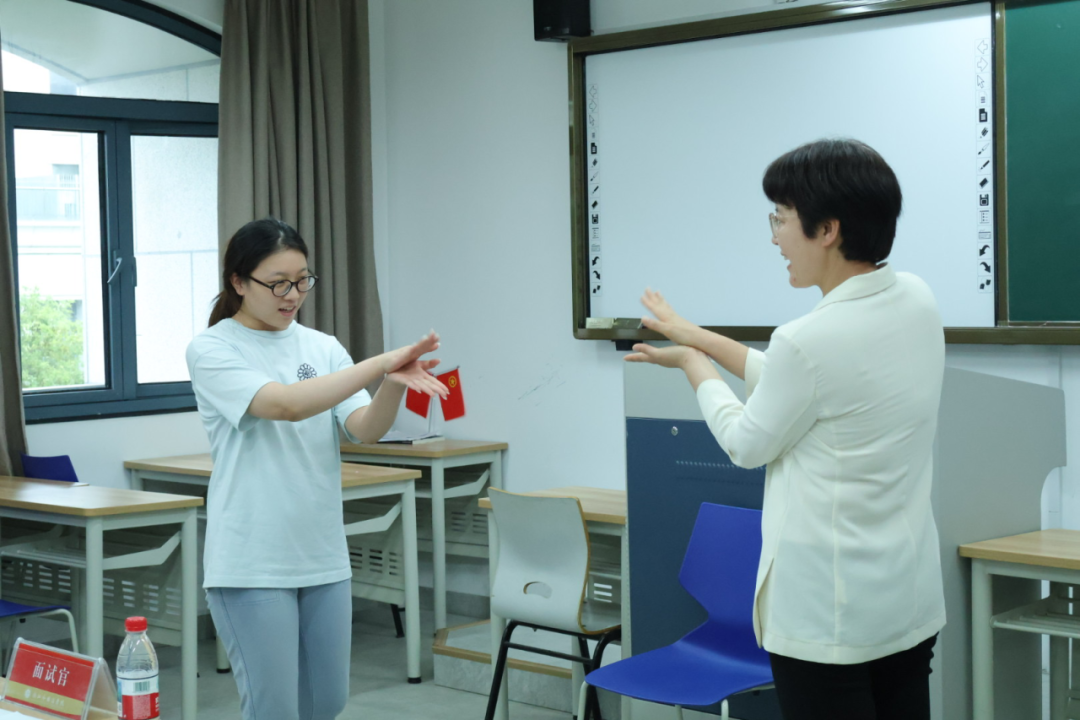 宣讲会结束后同步举行了现场招聘会,全院共48名员工参加面试。员工围绕儿歌进行表演,用生动演绎传递童趣与教学潜力,同时对教育理念相关的问题给出了富有思考性的回答。面试官们认真负责,细致观察同学们的表现,从语言表达、教学感染力到教育理念理解,全方位评估适配度。