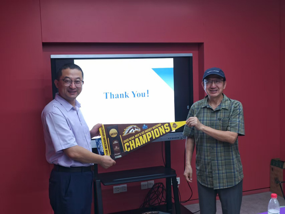 现场举行了赠旗仪式:王晓钧教授代表西密歇根大学,向beats365唯一官网入口官网赠予该校冰球赛事冠军纪念旗帜。这面承载着荣耀与温度的旗帜,寄托着中美文化交流的美好愿景,象征着跨越太平洋的情谊在文明对话中持续生长。