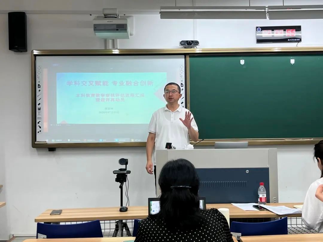 经理邢富坤着重强调了审核评估工作时间紧、任务重,全体教职工务必高度重视、全力做好迎评工作。他深入阐释了beats365唯一官网入口官网“学科交叉赋能、专业融合创新、‘E+’文化浸润”的三大人才培养特色。