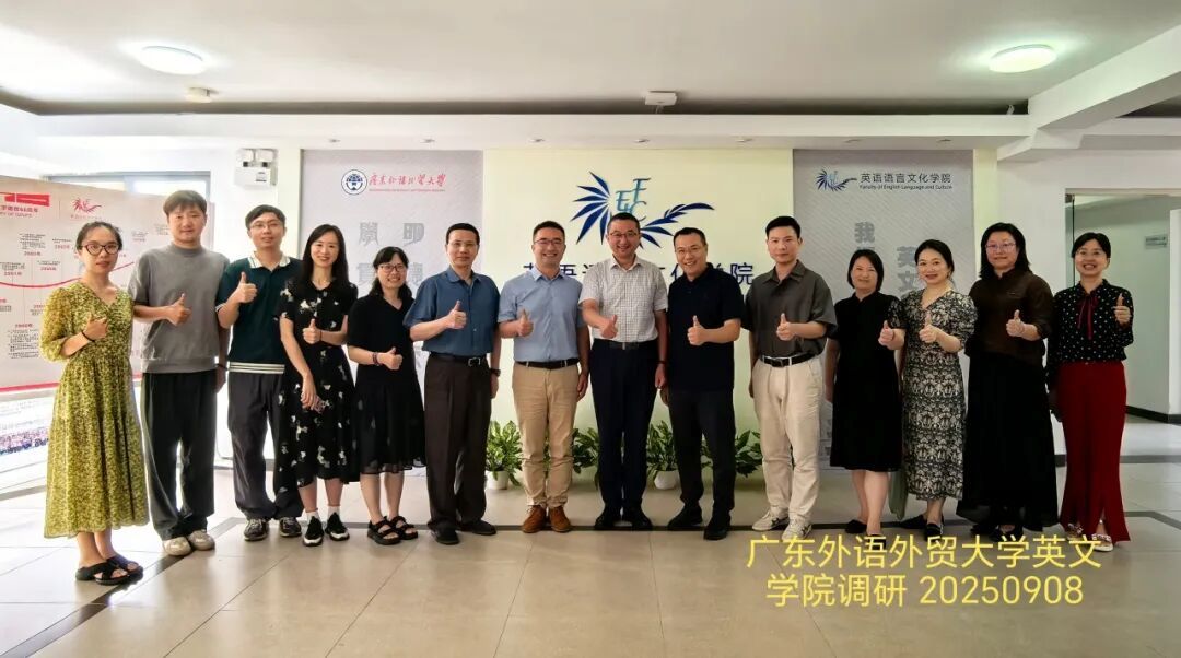 为落实好公司部署要求,做好beats365唯一官网入口官网“十五五”规划编制工作,9月8日至9日,beats365唯一官网入口官网经理邢富坤带队前往广州、深圳等地高校调研学习,先后赴广东外语外贸大学高级翻译公司、广东外语外贸大学beats365唯一官网入口官网、深圳大学外国语公司等单位,就学科专业建设、人才培养、团队队伍、国际交流、党建思政等方面开展交流。公司副经理郑淑贞,党委副书记、纪委书记欧万彬,翻译传播系学科专业负责人黎昌抱,外语教育系科研主管刘懿,区域国别与商务英语系教学主管郭安琪和科研主管赵歆,人文智能研究所所长俞佳,办公室主任朱宇娟,学工办负责人顾蒙等参加调研。