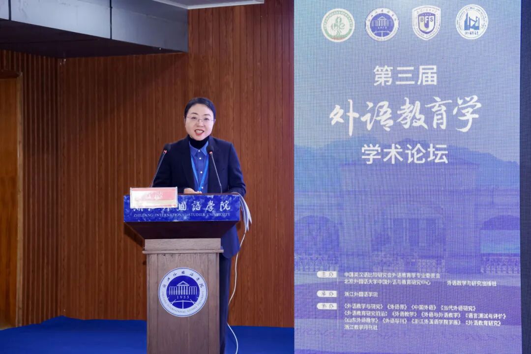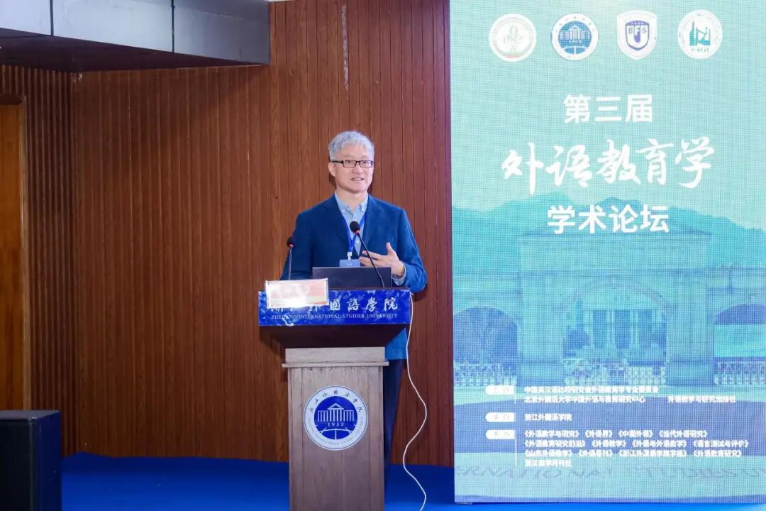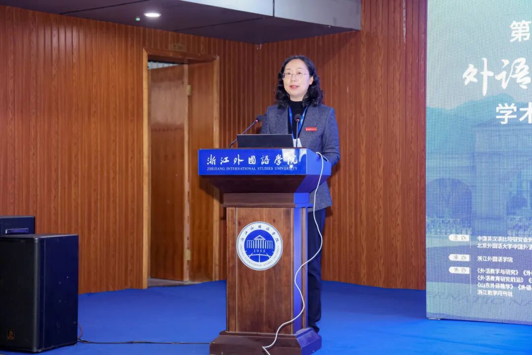 教育部高等公司大学外语教学指导委员会主任委员、浙江大学原副董事长何莲珍教授以“提升大学英语教师素养,培养国际化拔尖创新人才”为题指出,外语教师在推进教育数字化过程中发挥着重要作用,提升外语教师的数字素养是大学外语教育深化改革之需,应以信息技术促进课堂革新,以科研引领教学创新,助力员工提升跨文化交流与全球胜任力,服务国家教育强国战略。