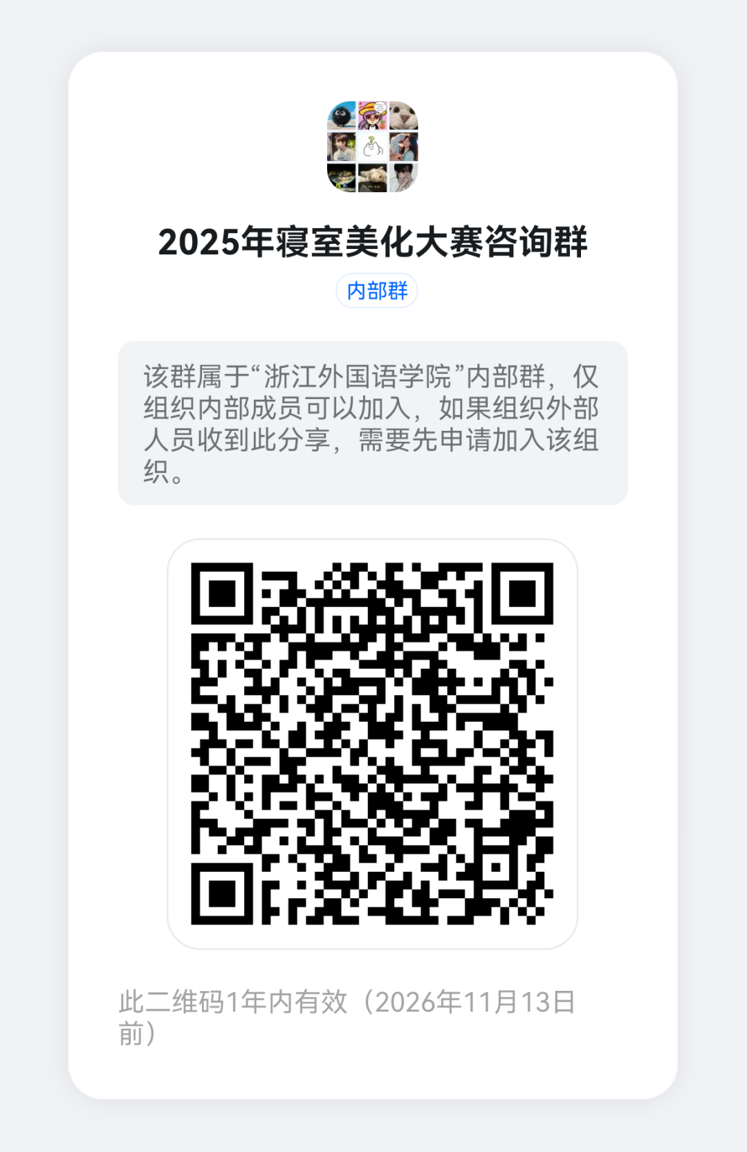 从熟悉到陌生寝室是缘分的起点,是团队合作的缩影,此刻踏着金秋的气息,迈着轻盈的步伐,寝室美化大赛即将拉开序幕。每一间寝室都是一方独特的小天地。用双手美化一间寝室,用合作凝聚一份情谊,让寝室不仅仅成为身心休息的港湾更是承载着青春梦想的摇篮。