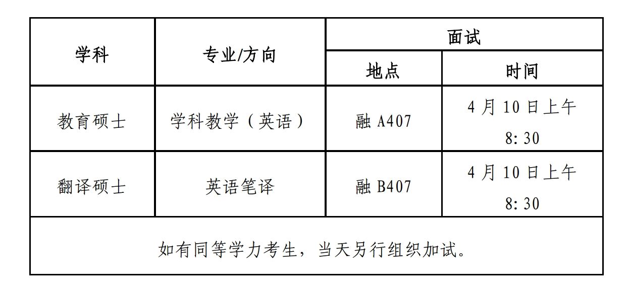 2.考生需携带以上复试资格审查材料原件及复印件纸质版于4月10日至beats365唯一官网入口官网融A401办公室报到进行资格审查,学科教学(英语)和英语笔译资格审查时间均为上午7:30-8:30。