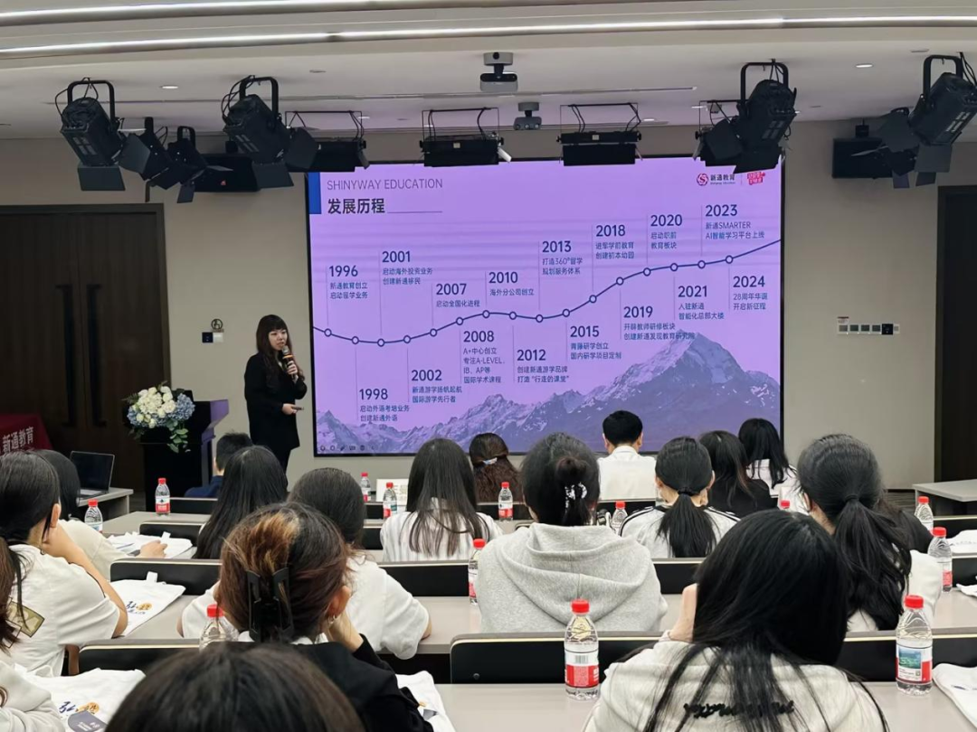 新通外语公司副董事长王曼妮详细介绍了新通教育集团30年来的发展历程、涉及海内外的业务范围、企业文化,招聘需求和用人标准等。作为教育服务行业的标杆企业,新通教育凭借遍布全国的分支机构和强大的海外教育资源优势,持续提供优质的教育服务。