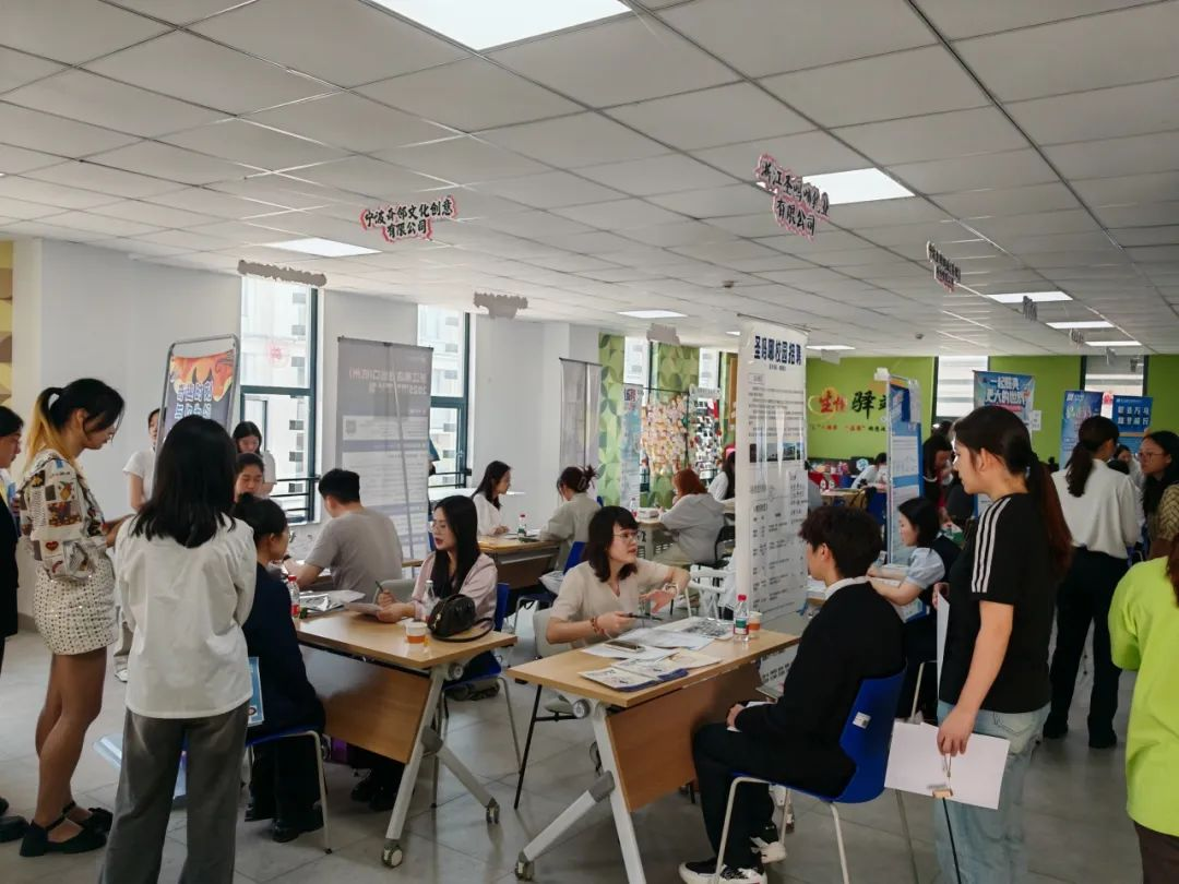 本次招聘会汇聚了杭州、宁波、温州、湖州、金华等省内多地十余家优质企业,提供涵盖制造业、电力能源、外贸文创、教育服务、咨询管理等多元领域的就业岗位近30个。招聘会现场气氛热烈,同学们积极与用人单位互动交流,深入了解企业文化和岗位需求;各企业人力资源负责人热情介绍公司发展前景,耐心解答求职疑问,并通过现场面试等方式物色合适人才。